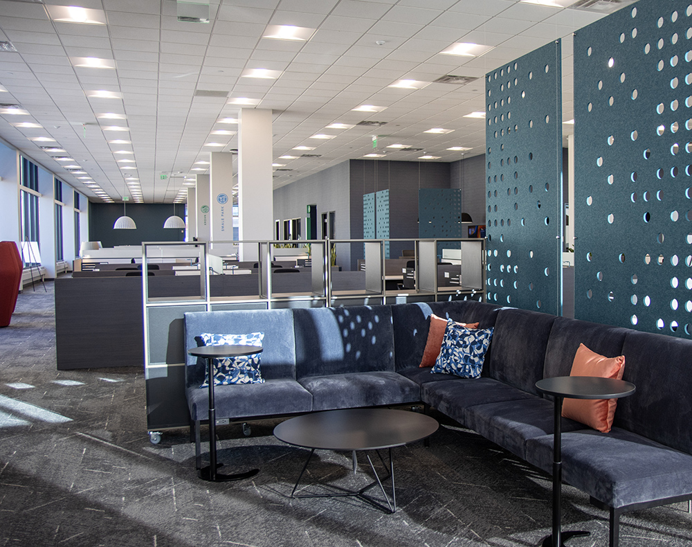 Workstation Enhancements: Individual workstations feature ergonomic furniture, multi-use charging stations, wireless connectivity and plenty of natural light to create a comfortable and productive environment. Additionally, noise reducing/absorbing materials help ensure a quiet workspace.